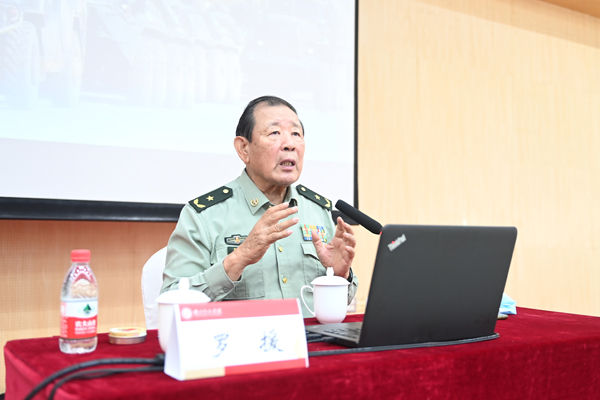 本网讯 5月25日,十一届全国政协委员、军事科学院世界军事研究部原副部长、博士生导师罗援少将应邀来校作专题辅导报告。主题教育读书班全体学员、机关党委全体党员、学生党员代表参加。校纪委书记王栎主持。