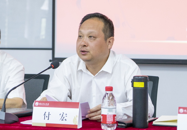 副校长付宏介绍了审核评估线上评估的基本情况和相关问题。结合入校评估工作方案,他对各个部门和二级学院下一阶段的工作做了详细的布置和安排,要求各个单位做好本单位的工作方案,责任到人。