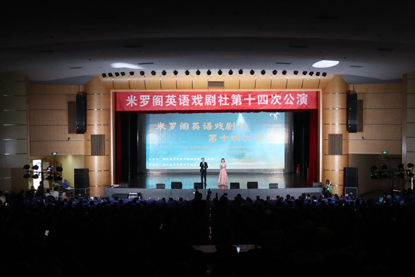 本网讯 6月6日,米罗阁英语戏剧社第十四次公演在大学生活动中心一号报告厅举行。活动由外国语学院、校团委主办,米罗阁英语戏剧社承办,公演的剧目为莎士比亚的《哈姆雷特》与王尔德的《道林·格雷的画像》。本科教育教学审核评估专家组莅临现场,与师生们共同观演。