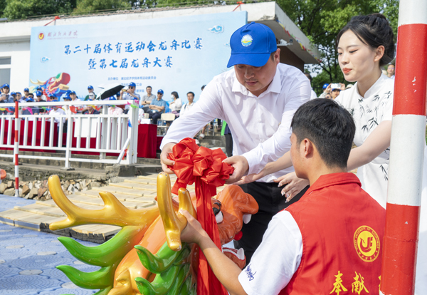付宏、党委常委许传华为决赛龙舟披红。副校长鲁晓成、何慧刚、张国安,纪委书记王栎为决赛龙舟点睛。