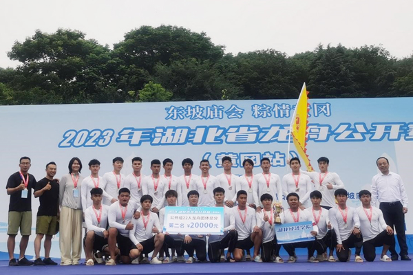 本网讯 6月10日,2023年湖北省龙舟公开赛(黄冈站)在黄冈遗爱湖开赛。来自湖北省各地的32支队伍齐聚遗爱湖,飞桨逐浪,竞渡争先。校龙舟队参加了公开组22人龙舟200米、500米直道竞速比赛,在经过两天时间7轮比赛的较量后,斩获了两个项目的亚军,获团体总分第二名。