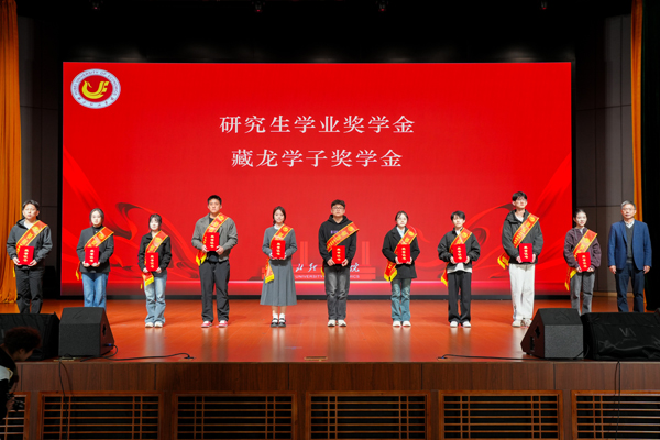 校党委副书记汪达为研究生学业奖学金、藏龙学子奖学金获得者代表颁奖