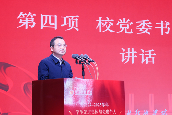 校党委副书记汪达宣读表彰决定。学校授予国贸2241等40个班级“先进班集体”称号;授予聂一休等74名学生“‘三有三实’优秀大学生标兵”称号;授予徐丹等1351名学生“‘三有三实’优秀大学生”称号;授予蒋凤美等341名学生“优秀学生干部”称号;授予张珂婧等4197名学生藏龙学子奖学金。