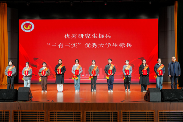 副校长张国安为优秀研究生标兵、“三有三实”优秀大学生标兵获得者代表颁奖