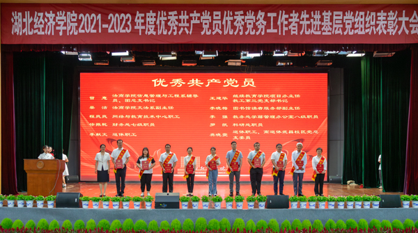 本网讯 6月29日,学校隆重举行优秀共产党员、优秀党务工作者和先进基层党组织表彰大会。校领导汪达、鲁晓成、何慧刚、张国安、王栎、许传华出席,优秀共产党员、优秀党务工作者和先进基层党组织获得者、中层副职以上党员干部、师生党员代表参会。