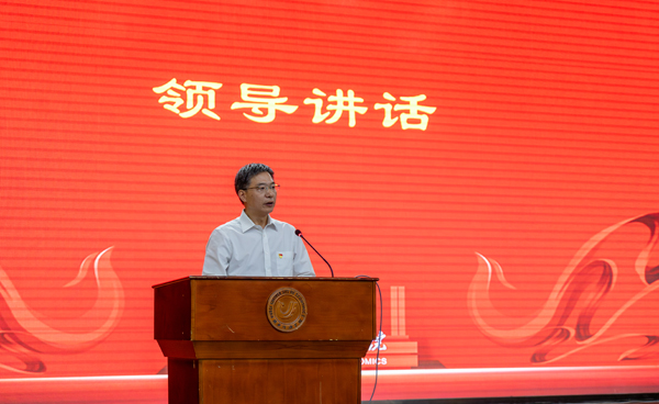 校党委副书记汪达讲话,他代表学校党委向受到表彰的优秀共产党员、优秀党务工作者和先进党组织表示热烈的祝贺!向全校各级党组织和辛勤工作在各条战线上的广大党员以及离退休老党员和学生党员们,致以节日的问候!