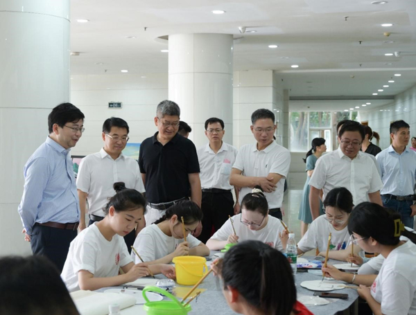 黄小华一行看望了2023年湖北省新招录教师,并参加了当日培训的相关活动。他与培训班学员亲切交流,慰问辅导员队伍,鉴赏学员绘画作品,观摩培训班小课堂活动,参观湖北省乡村教师青春影像馆,与全国优秀特岗教师们开展座谈交流。