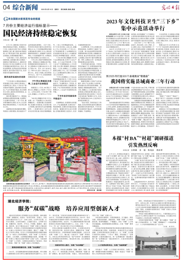 同时,学校把高水平科研成果贯穿于人才培养的核心环节,本科生以第一作者在SCI国际学术期刊和国内核心期刊发表高水平论文。碳排放权交易省部共建协同创新中心主任主持申报的教研课题获第九届湖北省高等学校教学成果一等奖。这些教学成果奖是对“双碳”经管人才培养质量持续提升的认可。