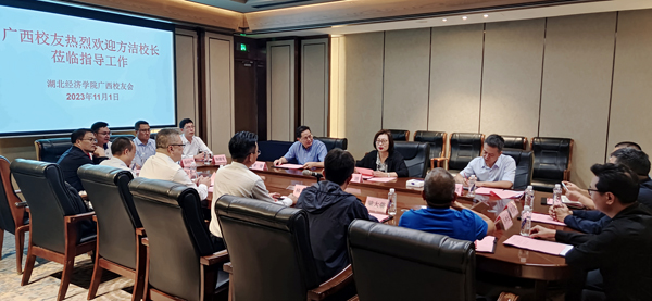 本网讯 11月1日,在广西南宁南湖畔,校长方洁与广西校友会代表齐聚一堂,畅叙师生情。合作发展处负责人陪同。