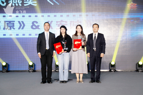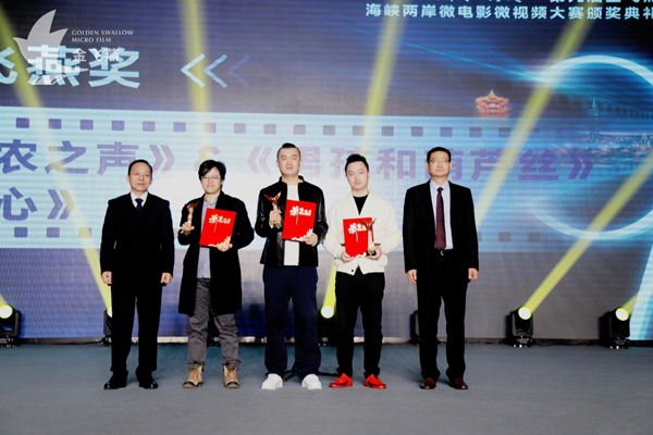 大陆作品《男孩和葫芦丝》《归心》、台湾作品《布农之声》获得“铜飞燕”奖,省台办副主任张丹青、副校长何慧刚颁奖