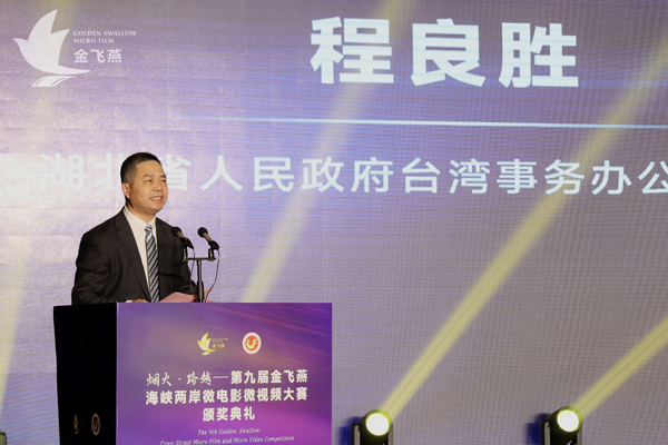 程良胜致辞时强调,湖北积极鼓励台湾青年来鄂发展,出台一系列扶持台青创业就业政策举措,吸引越来越多台青来鄂追梦筑梦圆梦。他指出,青年是两岸交流合作的生力军。“金飞燕”海峡两岸微电影微视频大赛吸引两岸青年广泛参与,实现了两岸相识相通相融。他希望,两岸青年当好中华优秀传统文化的传播者,运用更加现代的传播手段和方式,打造中国话语和叙事体系,展示中华文明的精神标识和文化精髓,增强中华文化的传播力和影响力。希望两岸青年当好两岸融合发展的践行者,用手中镜头记录两岸交流往来的温情场景,讲述真实而鲜活的两岸融合发展故事。希望台湾青年当好两岸和平发展的维护者,把握历史大势,坚守民族大义,在记录日常点滴的“小确幸”中感受中华民族复兴伟业的“大幸福”,为促进两岸关系良性发展,维护台海和平稳定,多尽心力、多作贡献。