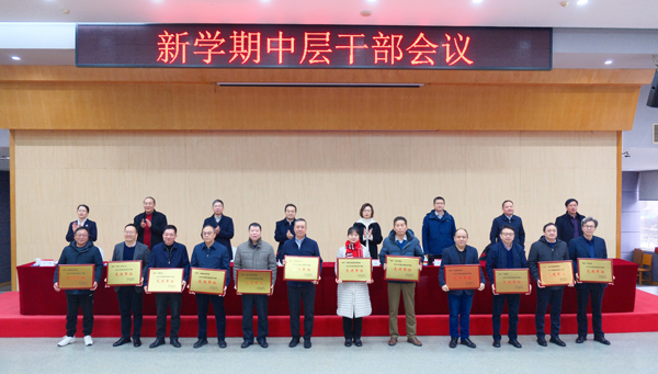 本网讯 2月26日,学校召开新学期中层干部会议。全体校领导出席,全体中层干部、校学术委员会秘书长参会。校党委书记高义勇主持。