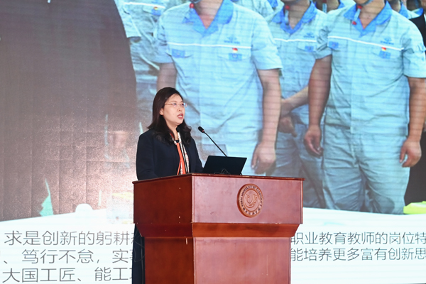 山西机电职业技术学院教授、首批全国高校黄大年式教师团队带头人、国家级职业教育教师教学创新带头人李粉霞表示,在言传中身教,老师做到了就能带给学生力量。李粉霞讲述了她和8位老师一起备战全国数控大赛,并参加世界数控大赛的故事。她的精神鼓舞了学生,也带动了学生积极钻研技艺。“我和我的团队经历了学校从中专到高职,从高职迈入国家双高的艰辛奋斗历程,我们将携手共进,为职业教育培育更多的大国工匠。”李粉霞说。