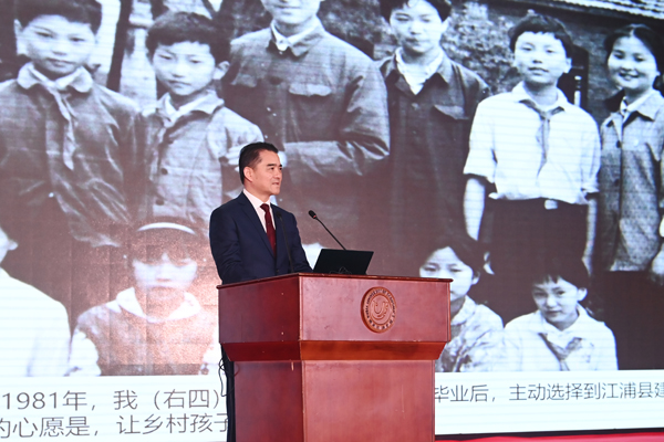 中国教育学会副会长、南京市浦口区行知教育集团总校长杨瑞清回忆了40年前在南京江浦县建设乡五里村小学的任教经历。在贫困的乡村,他和同事们统筹乡土资源开发的课程教学体系培养出了一批又一批人才。伴随着乡村脱贫,这所小学也发生了翻天覆地的变化。“在这场跨度为40年的教育实验中,我们深刻体会到老师引领示范的重要性。我们愿意躬耕教坛,努力为学生做好全面品格的引路人、学习知识的引路人、创新思维的引路人、奉献国家的引路人。”杨瑞清说。