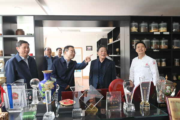 校党委书记高义勇陪同全国政协委员、省文联名誉主席熊召政参观楚菜研究院