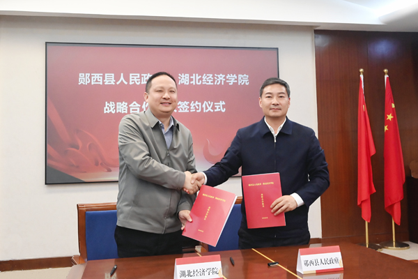 副校长付宏和郧西县委常委、常务副县长谭道军签订校地合作协议