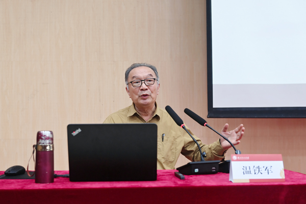 本网讯 4月18日,“社科名家进经院”活动举行,著名“三农问题”专家温铁军教授作题为《全球化危机与中国转型》的报告。党委常委许传华主持。